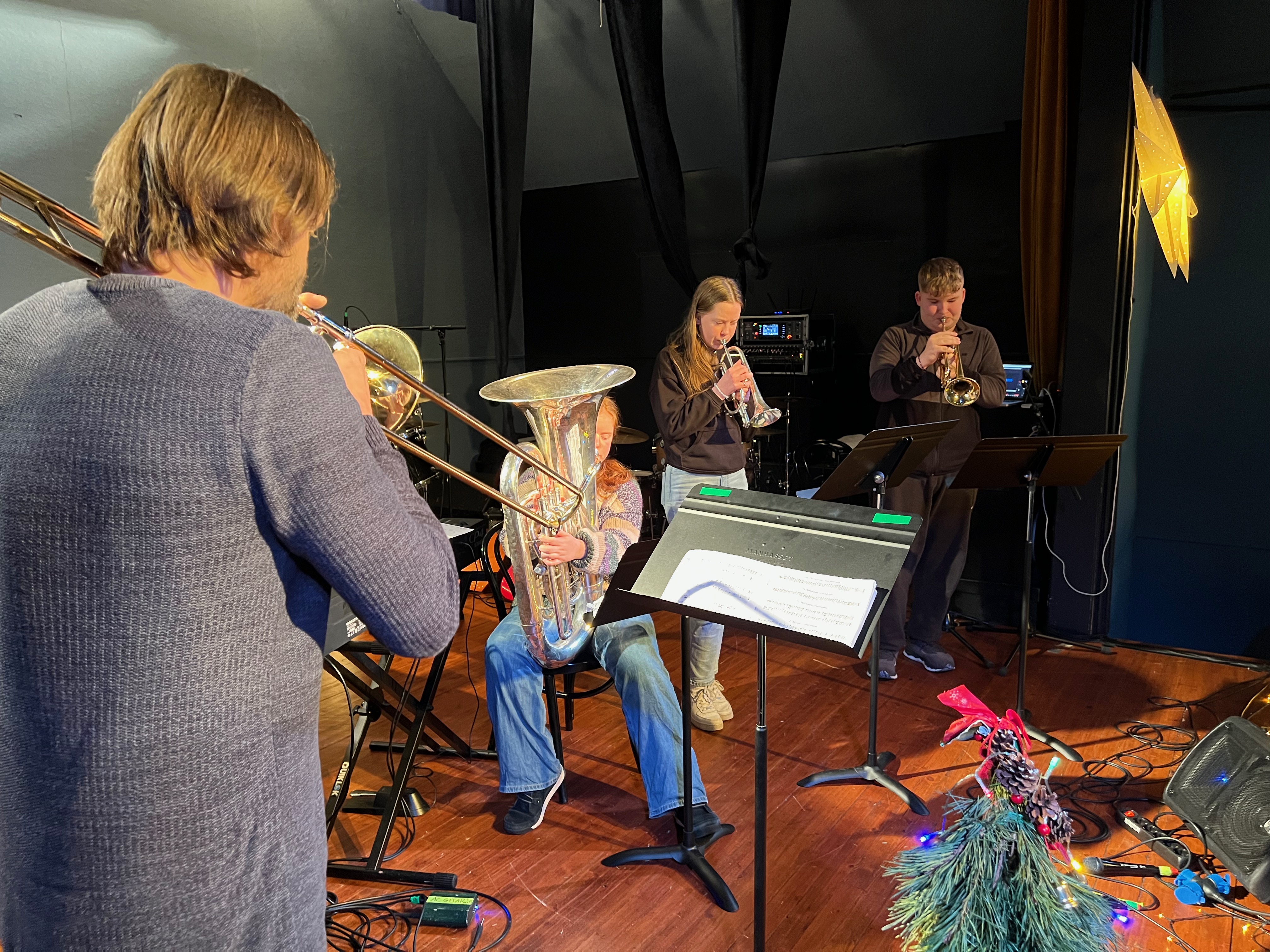To veldig fine og «julete» konsertar , ein kl.17 og ein kl.18.30 totalt 43 innslag .Ikkje alle er fotograferte som til dømes alle musikantane på første innslag på konserten og kulturkarusell med sin dramatisering av svenske julesongen»Juletrall» om «alt vi har å gjøre» heime før jul. På denne konserten brukte vi mest livemusikk minst mogleg playback. Dette for at elevane skal få oppleve å synge / spele med livemusikk. Lærarane måtte trø til med trommer, bass, piano og gitar.