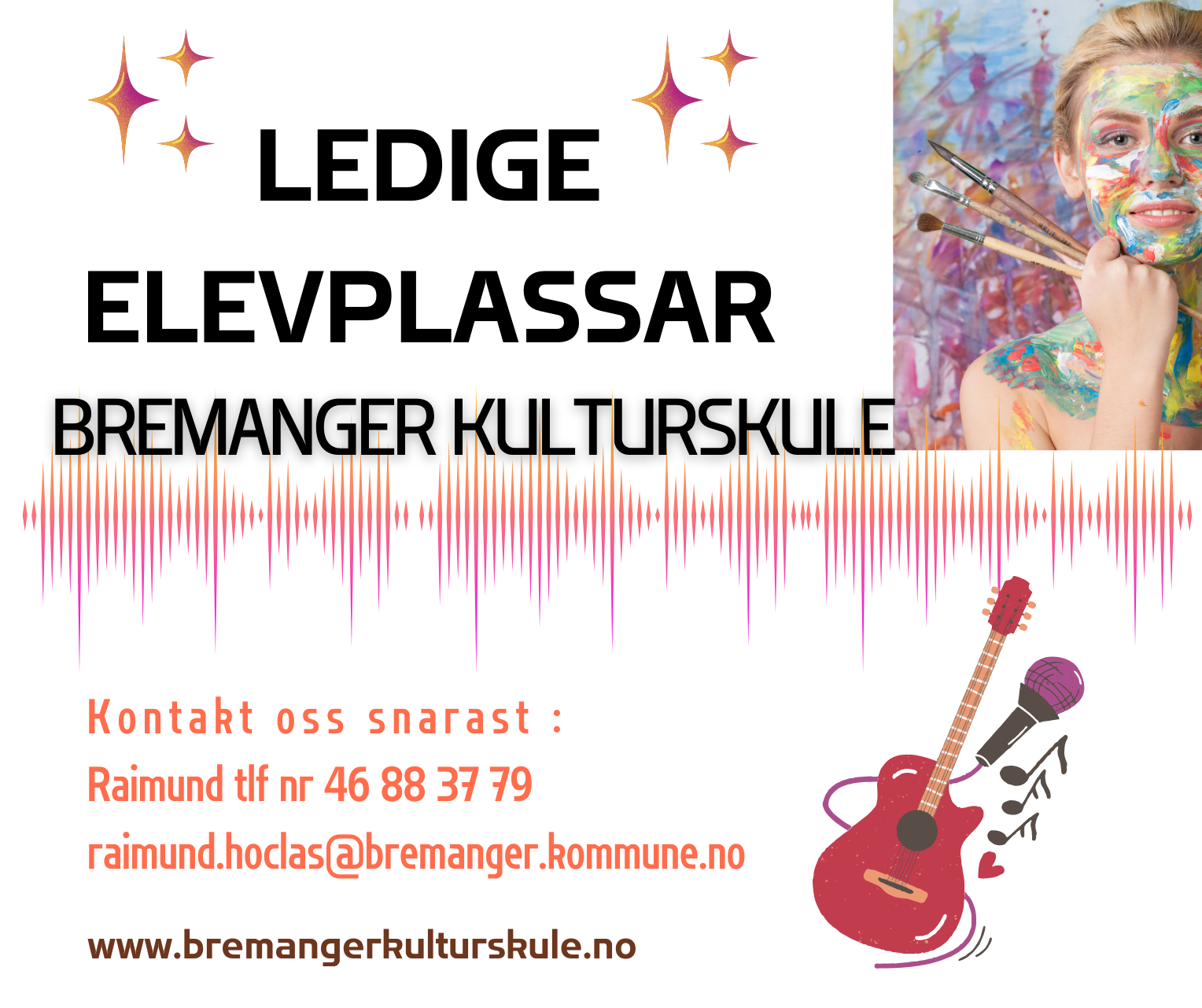 Velkommen til nytt kulturskuleår 2025/2026 Posted on august 18, 2025 by E.Solbakken Del dette: Click to share on Facebook (Opens in new window) Facebook Click to share on X (Opens in new window) X Meir Klikk for å skrive ut (Opens in new window) Skriv ut Click to email a link to a friend (Opens in new window) e-post Lik Lastar … LIknande innhald
